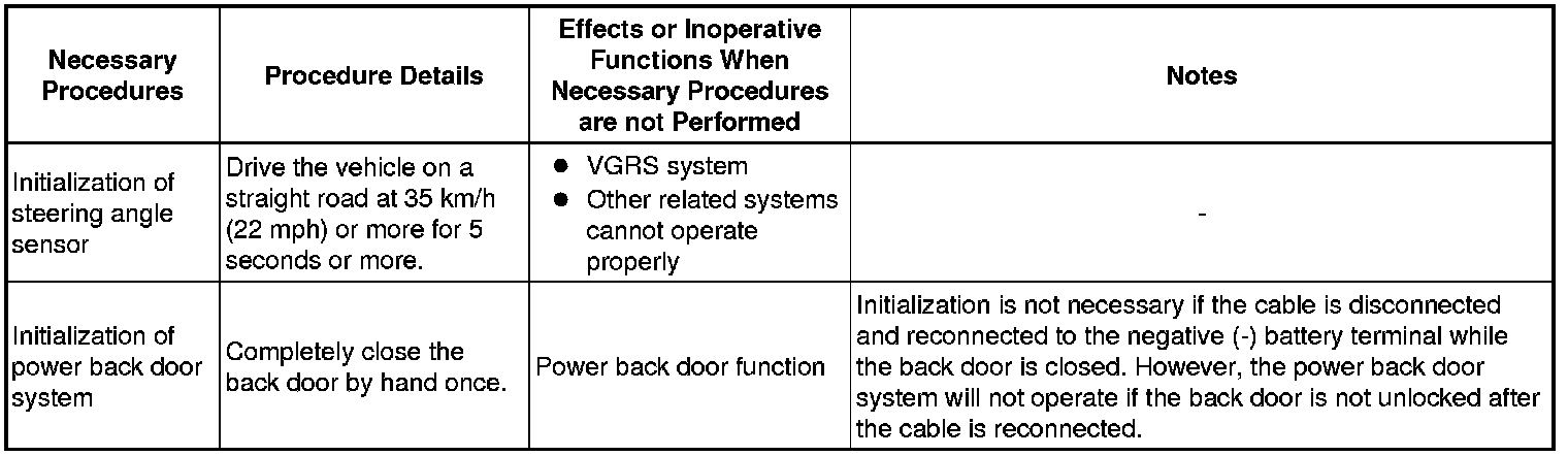 PROCEDURES NECESSARY WHEN CABLE IS DISCONNECTED/RECONNECTED TO BATTERY TERMINAL