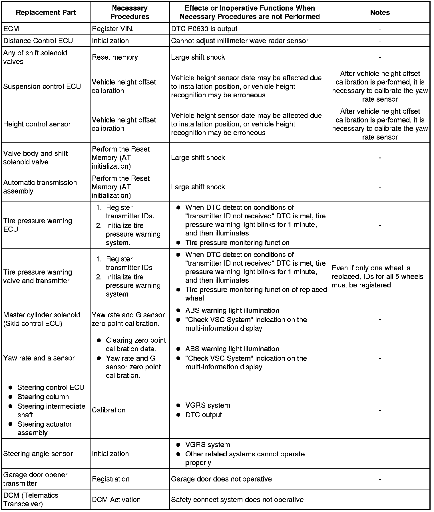 * Perform the Reset Memory (AT initialization) when replacing the automatic transmission assembly, valve body assembly or any of the shift solenoid valves.