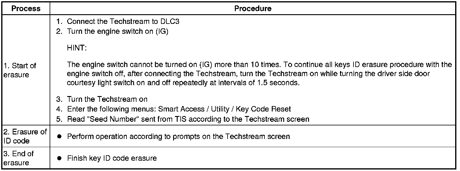 *: Perform this process for one of the keys registered to the vehicle. Finish the procedure within 30 seconds. If the procedure has not been finished within the specified time, perform the erasure from process 1 again.