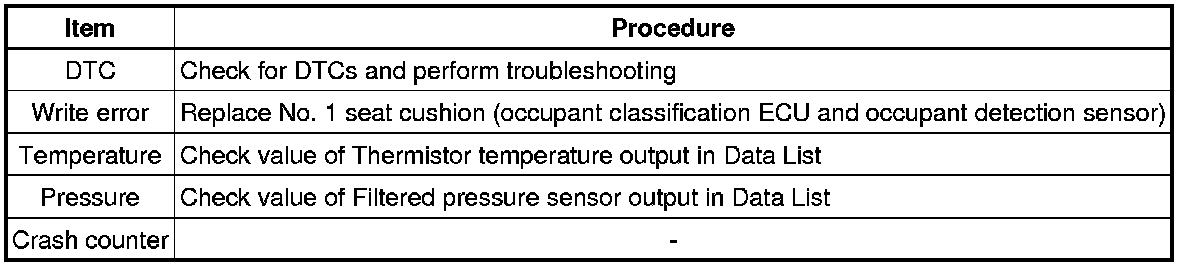 * If any DTCs related to the occupant classification ECU are output, troubleshoot those DTCs by referring to the Diagnostic Trouble Code Chart.