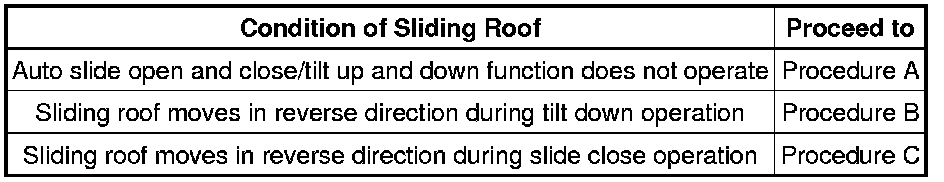 * When the sliding roof glass is replaced or removed and installed, or the drive gear assembly is replaced, the sliding roof drive gear requires initialization (pulse sensor initial position setting), as the glass position cannot be determined. If initialization is not performed, the auto slide open and close/tilt up and down function may not operate, or the sliding roof may move in reverse or become misaligned.