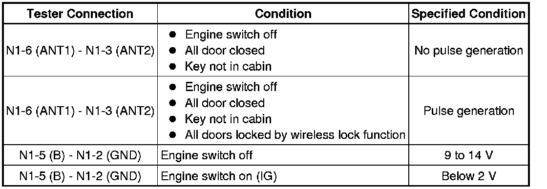 (b) Measure the voltage and check for pulses according to the value(s) in the table below.