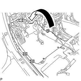 (d) Engage the claw and 3 clamps to install the floor carpet to the original position.