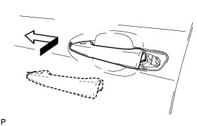 (b) Insert the rear end of the front door outside handle assembly into the front door outside handle frame, then slide the front door outside handle assembly toward the front of the vehicle to install it.