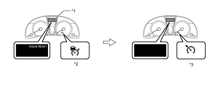 (d) Check that the indication of the vehicle-to-vehicle distance, which is shown on the multi-information display on the combination meter, changes from long to middle to short in that order.