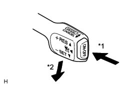 (5) Push the cruise control main switch to - SET, and then release it immediately. Check that vehicle speed decreases* (tap-down control).