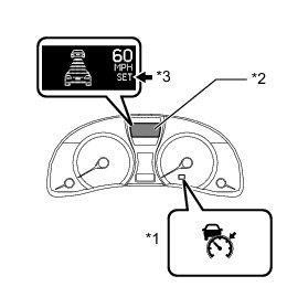 *: Constant speed control mode: increases by approximately 1.6 km/h (1 mph); vehicle-to-vehicle distance control mode: increases by approximately 1 km/h or 1 mph.