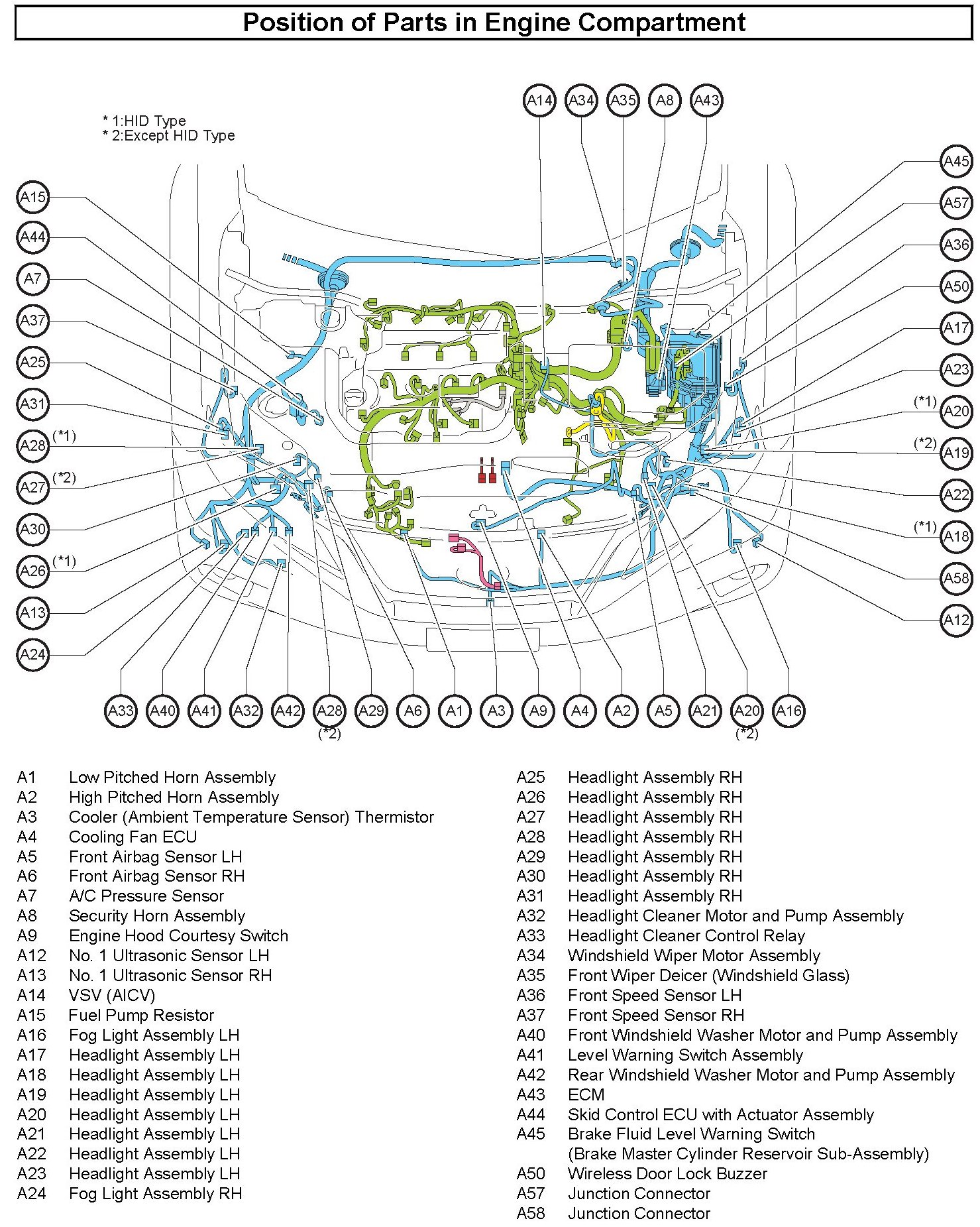 Positions Of Parts In Engine Compartment: