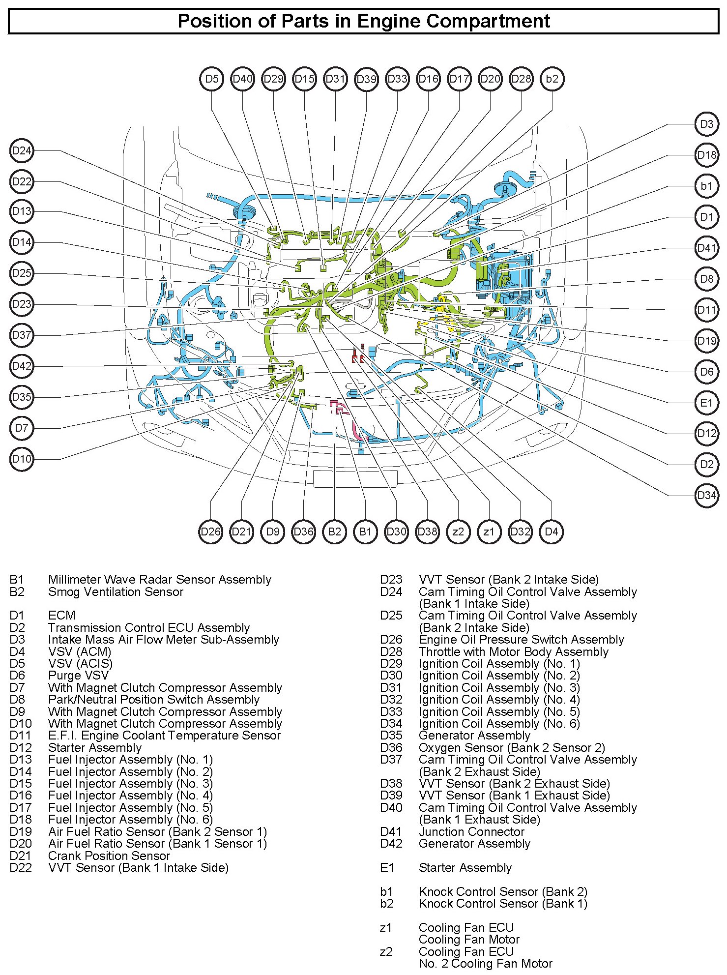 Position of Parts In Engine Compartment
