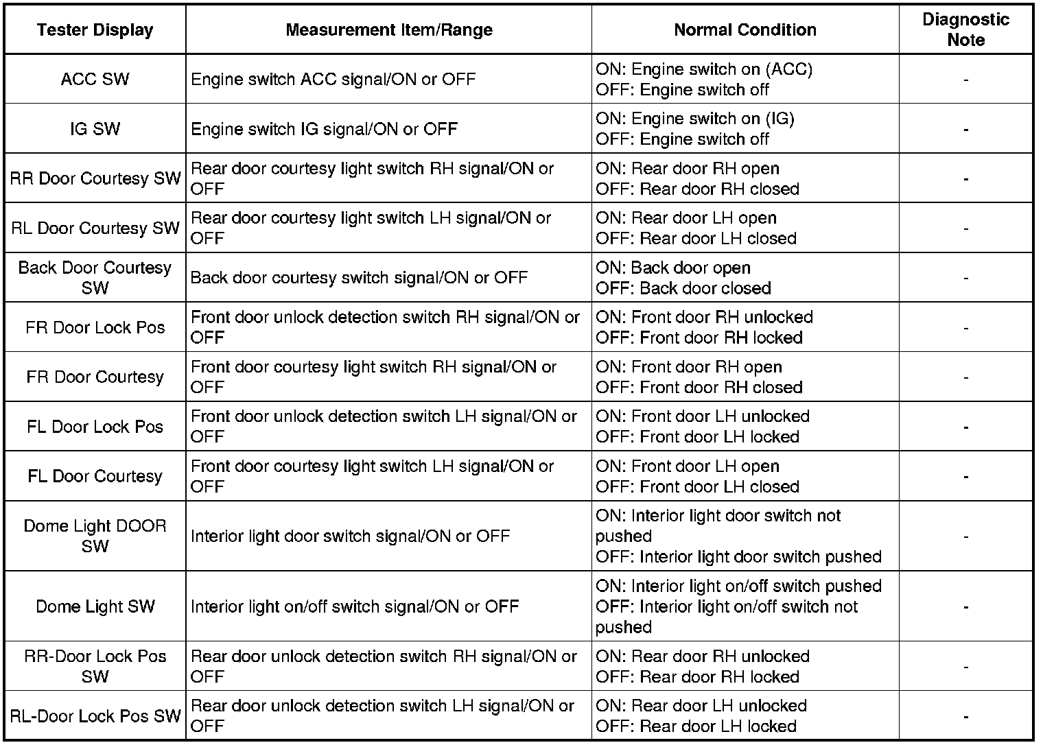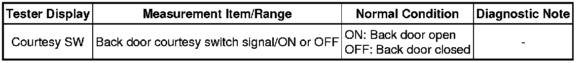 (d) Enter the following menus: Body Electrical / Main Body or Back Door / Data List.