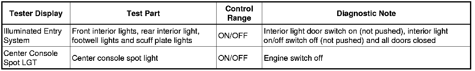 LIGHTING (INT): LIGHTING SYSTEM: DATA LIST / ACTIVE TEST