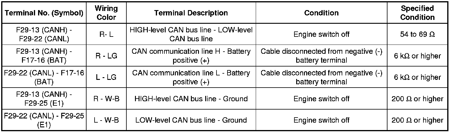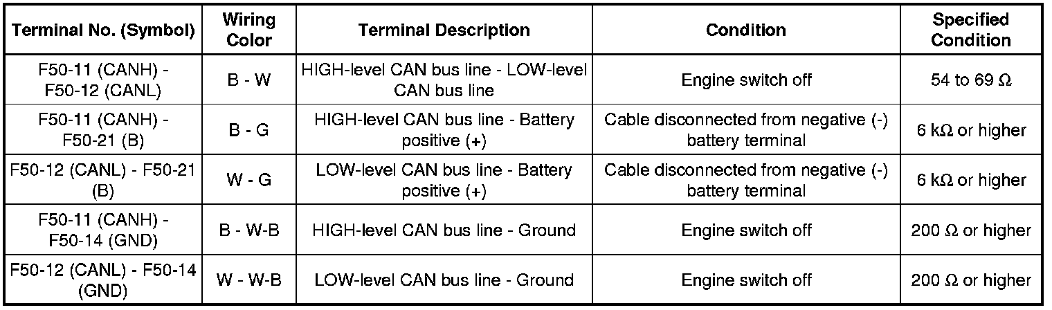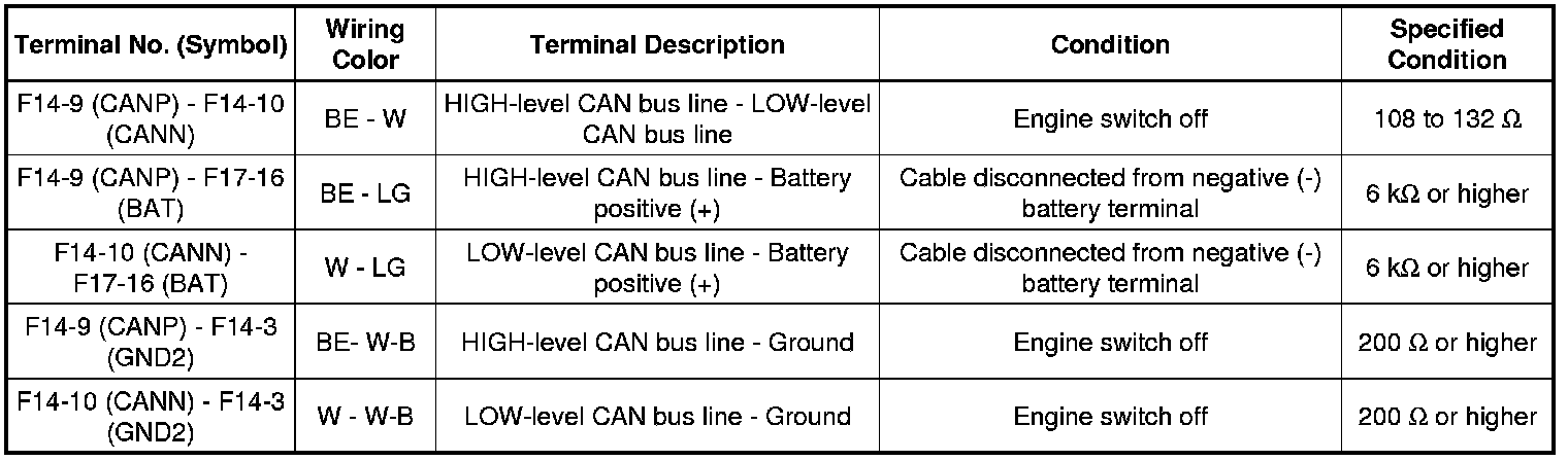 * Turn the engine switch off before measuring the resistances between CAN bus main wires and between CAN bus branch wires.