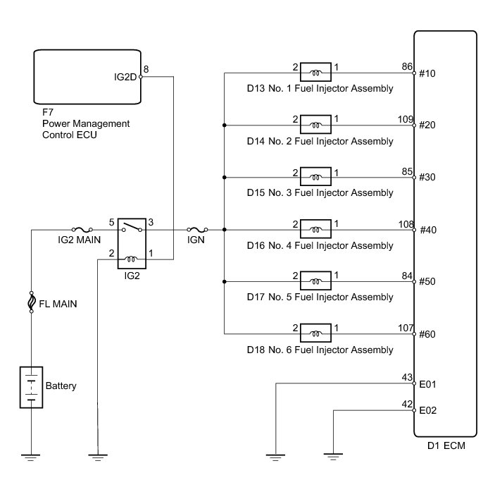 2GR-FE ENGINE CONTROL: SFI SYSTEM: Fuel Injector Circuit