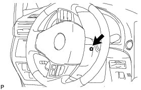 (e) Turn the steering wheel assembly to the left and install the screw as shown in the illustration.