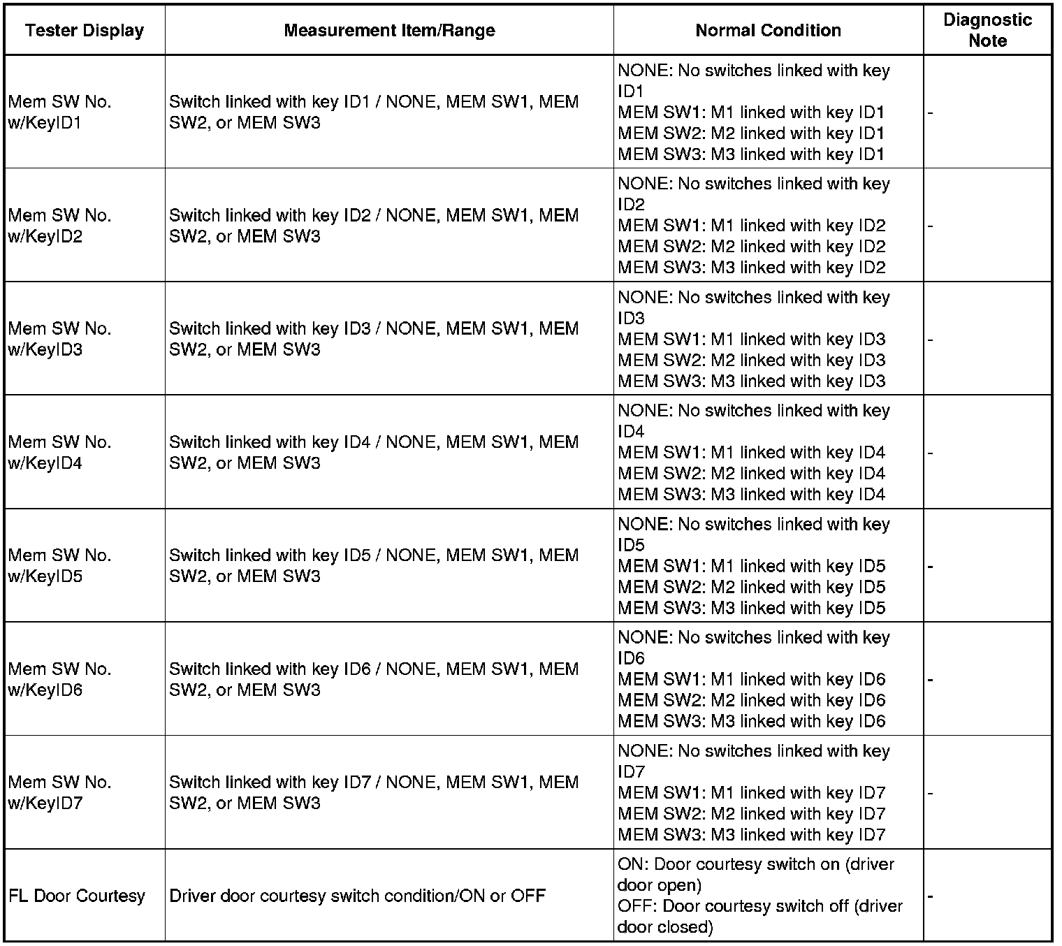 MIRROR (EXT): POWER MIRROR CONTROL SYSTEM: DATA LIST / ACTIVE TEST