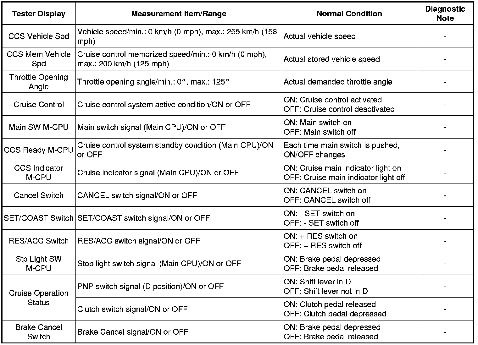 CRUISE CONTROL: CRUISE CONTROL SYSTEM: DATA LIST / ACTIVE TEST