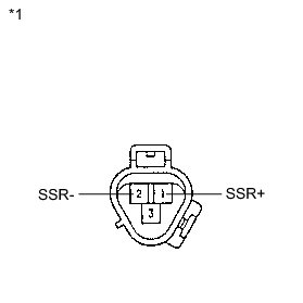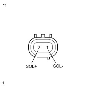 (b) When connector terminal 1 is connected to the positive (+) battery terminal, check that the following occurs: 1) the magnetic clutch's operating sound can be heard, and 2) the magnetic clutch's hub and rotor lock.