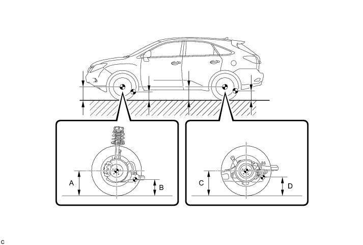 * Before inspecting the wheel alignment, adjust the vehicle height to the specified value.