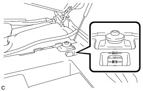 If the brake fluid level is lower than the MIN line, check for leaks and inspect the disc brake pads. If necessary, refill the reservoir with brake fluid to the MAX line after repair or replacement.