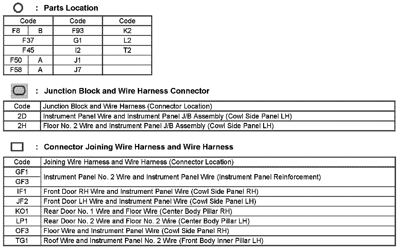 LocationsConnector Views: Diagrams of the connectors referred to within these diagrams can be found at Connector Views by Connector Number.