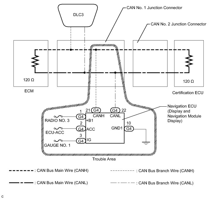 NG -- REPAIR OR REPLACE CAN BUS BRANCH WIRE OR CONNECTOR (NAVIGATION ECU BRANCH WIRE)