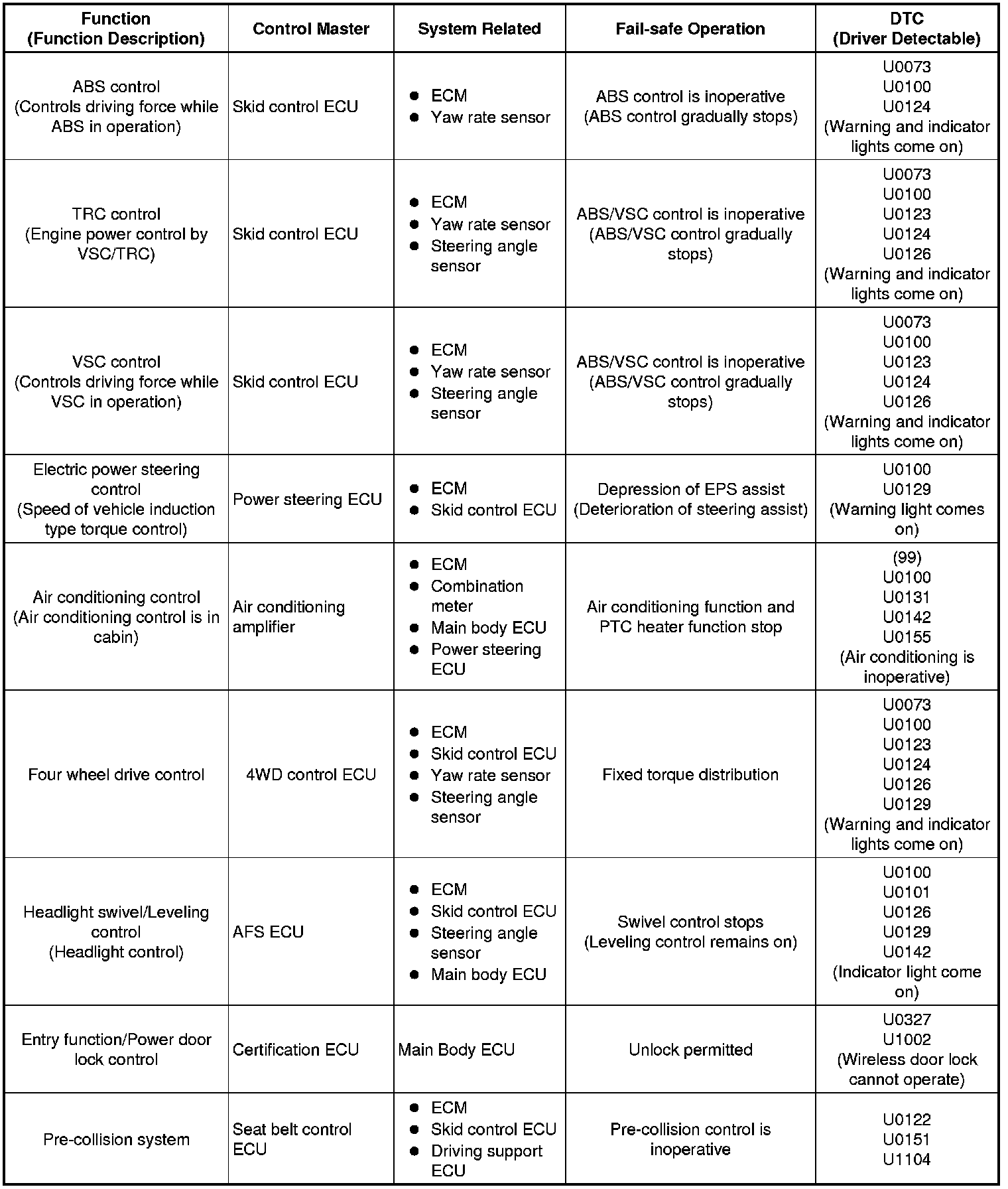 (a) When communication fails in any of the CAN bus wires (communication wires), a fail-safe function(s) will operate. The fail-safe function that is specified for each system operates to prevent those systems from malfunctioning.