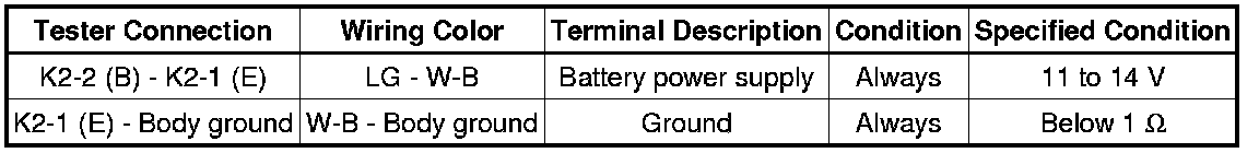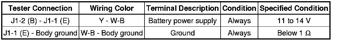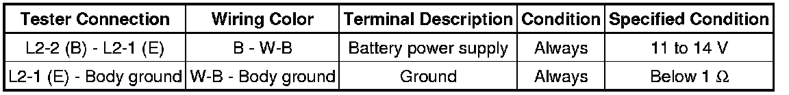 If the result is not as specified, there may be a malfunction in the wire harness.
