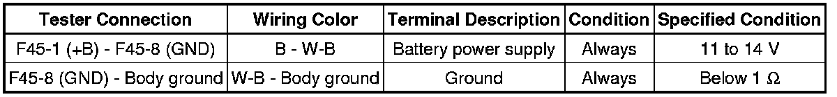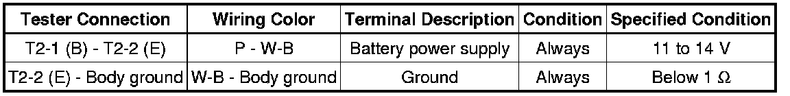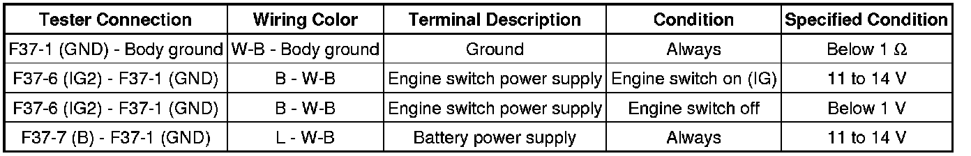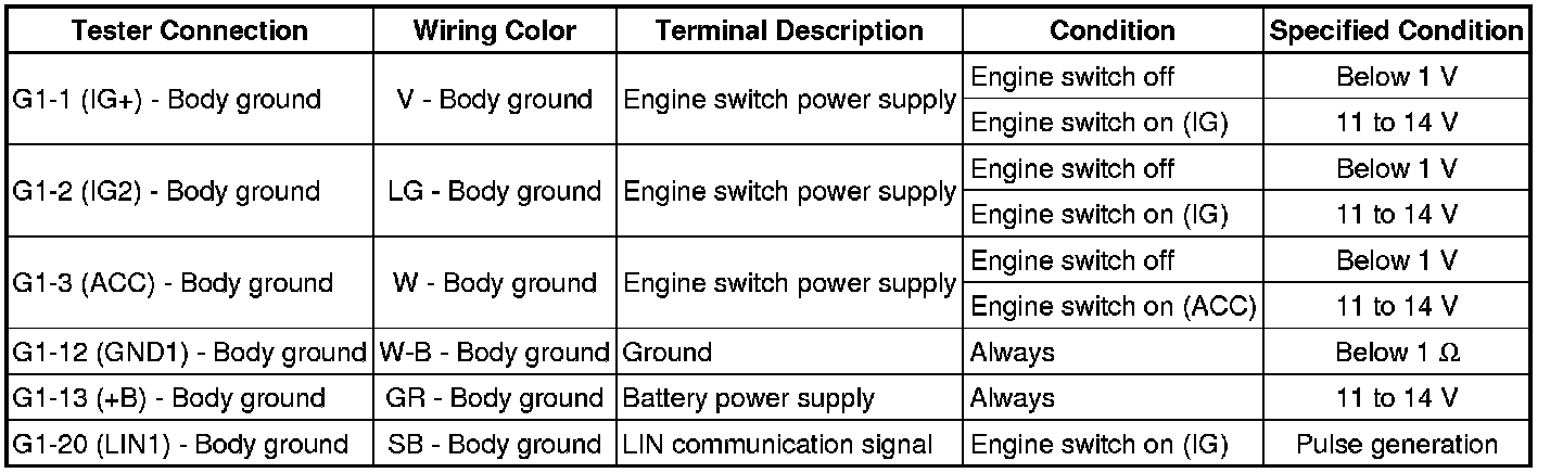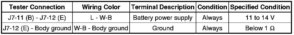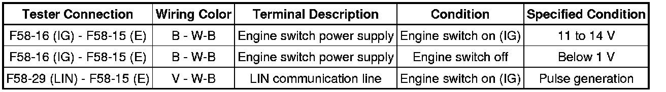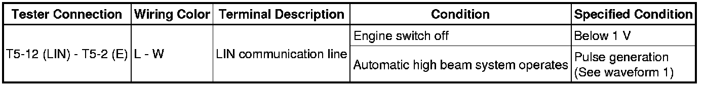 (d) Measure the voltage or check for pulses according to the value(s) in the table below.