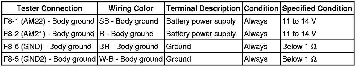 (b) Measure the voltage and resistance and check for pulses according to the value(s) in the table below.