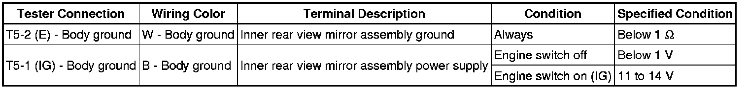 (a) Disconnect the T5 inner rear view mirror assembly connector.