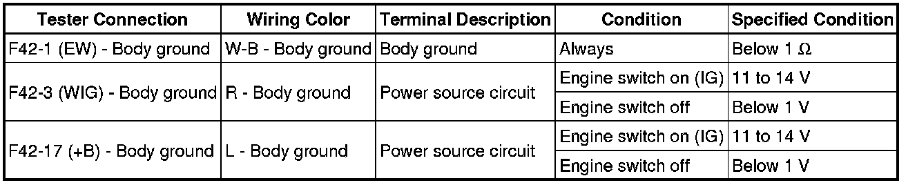 (a) Disconnect the F42 windshield wiper switch assembly connector.