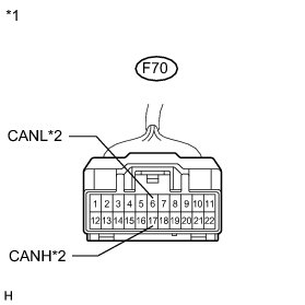 There may be an open circuit in the CAN bus main wire and/or the DLC3 branch wire when the resistance between terminals 6 (CANH) and 14 (CANL) of the DLC3 is 70 Ohms or higher.