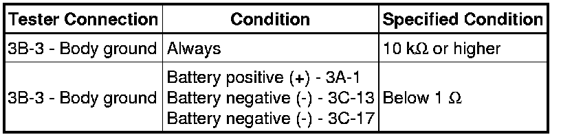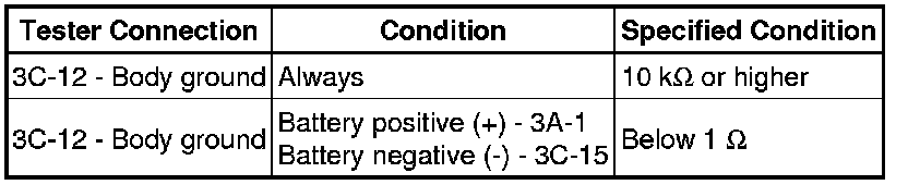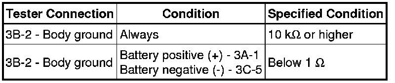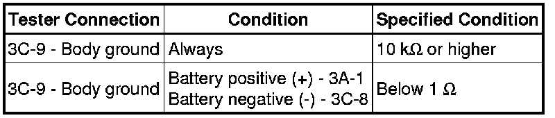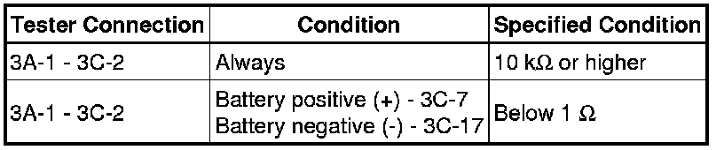 Measure the resistance and check for pulses according to the value(s) in the table below.