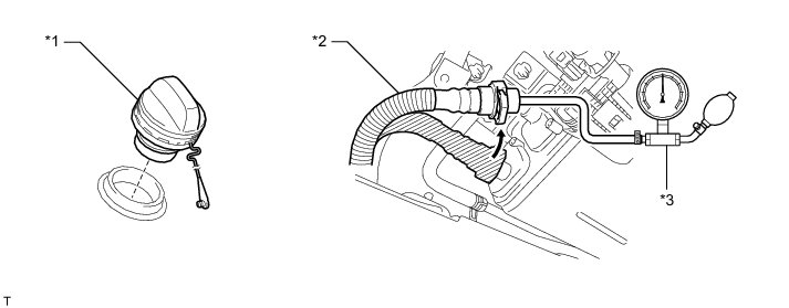 Perform this inspection with the fuel tank less than 90% full. When the fuel tank is full, the fuel fill check valve closes and the pressure is released through the 2 mm orifice. As a result, when the fuel tank cap is removed, the pressure does not decrease smoothly.