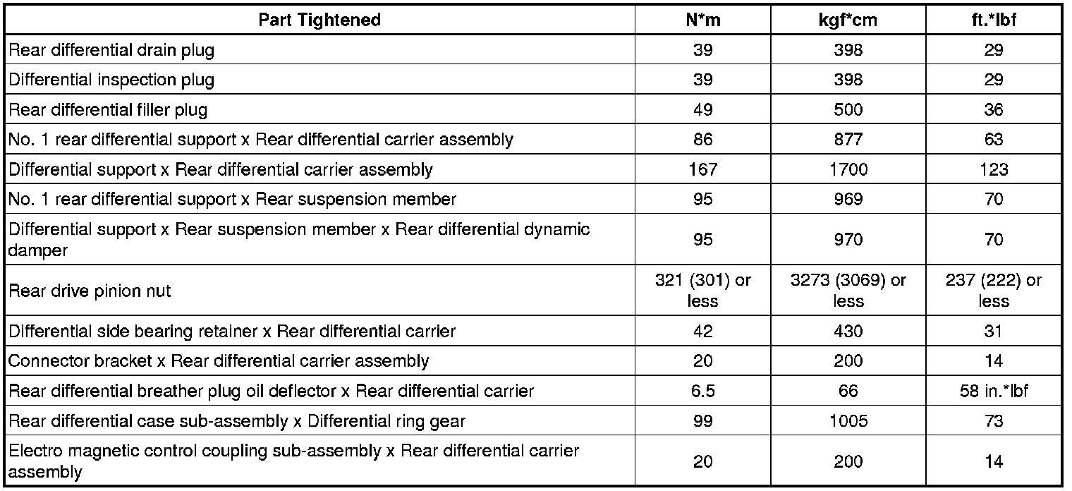SPECIFICATIONS: AXLE AND DIFFERENTIAL: TORQUE SPECIFICATIONS