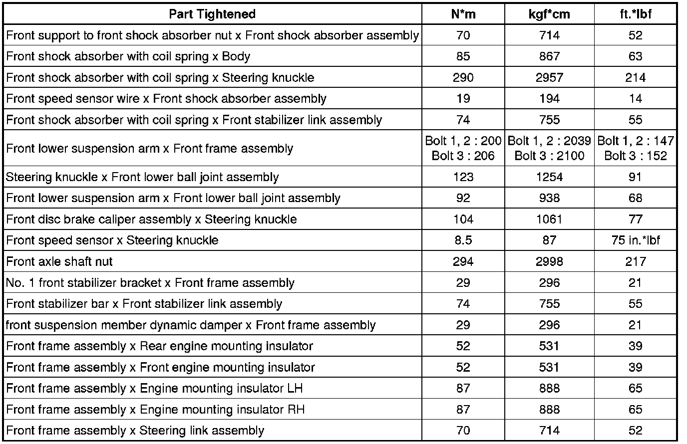 : TORQUE SPECIFICATIONS
