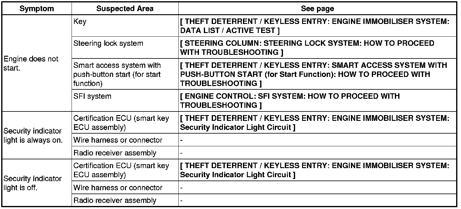 THEFT DETERRENT / KEYLESS ENTRY: ENGINE IMMOBILIZER SYSTEM: PROBLEM SYMPTOMS TABLE
