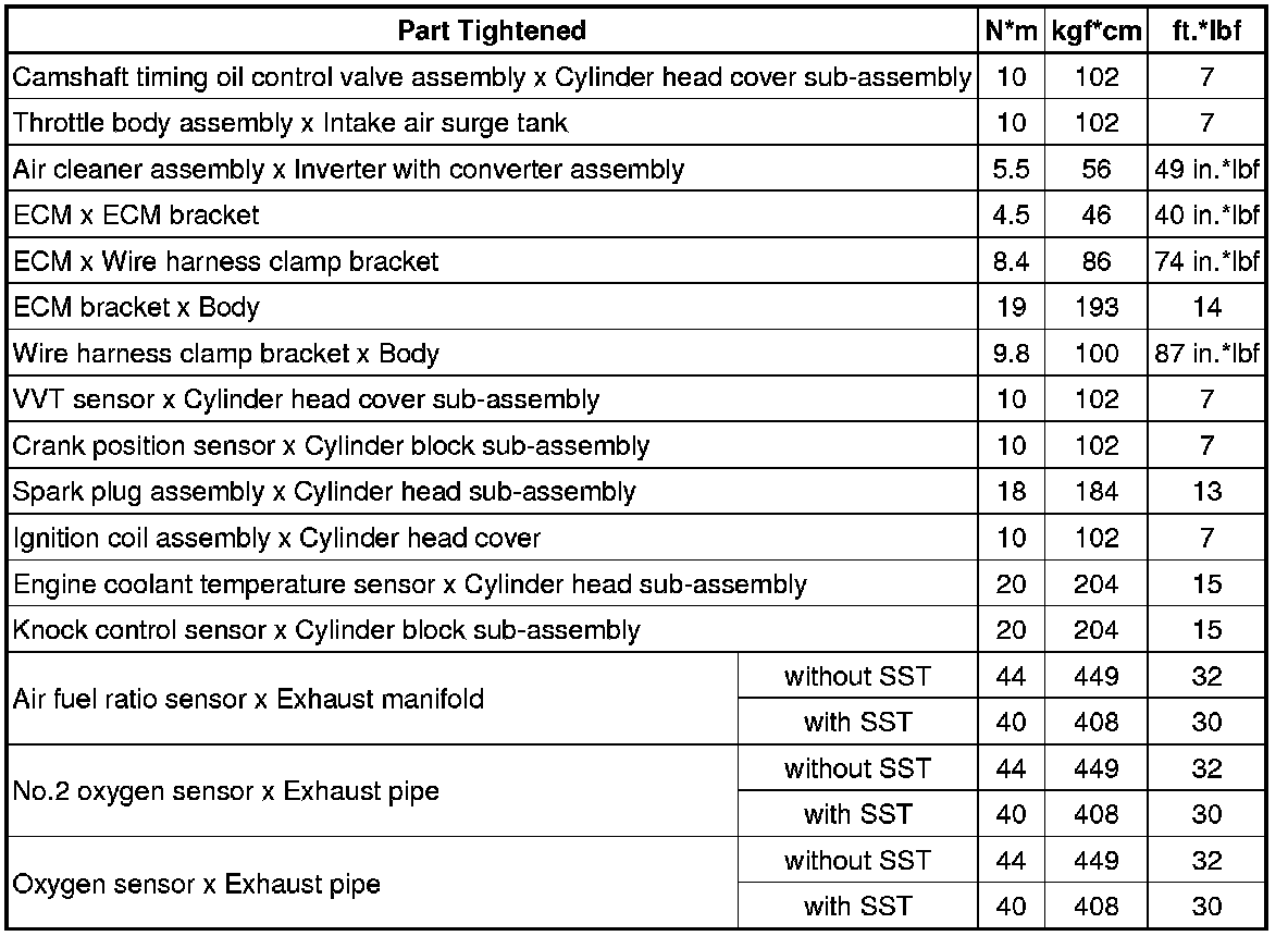 SPECIFICATIONS: 2GR-FXE ENGINE CONTROL: TORQUE SPECIFICATIONS
