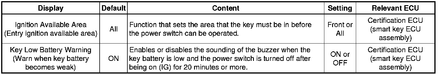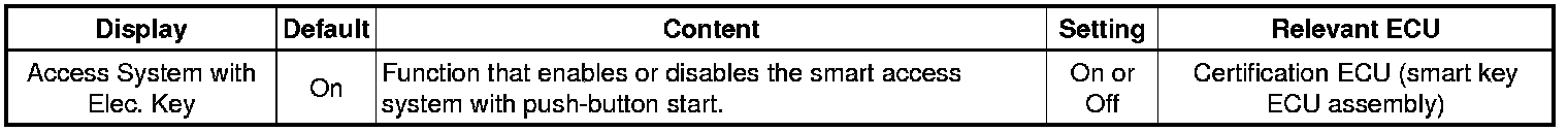 THEFT DETERRENT / KEYLESS ENTRY: SMART ACCESS SYSTEM WITH PUSH-BUTTON START (for Start Function): CUSTOMIZE PARAMETERS