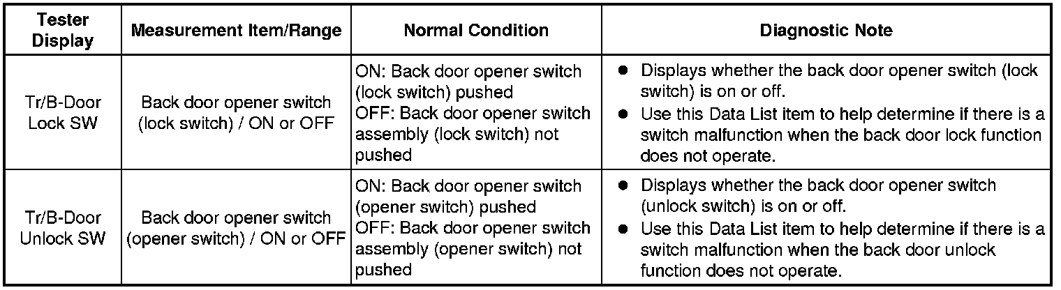 2. READ VALUE USING TECHSTREAM (BACK DOOR OPENER SWITCH)