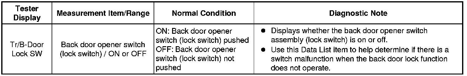 - Back Door Entry Lock Function does not Operate