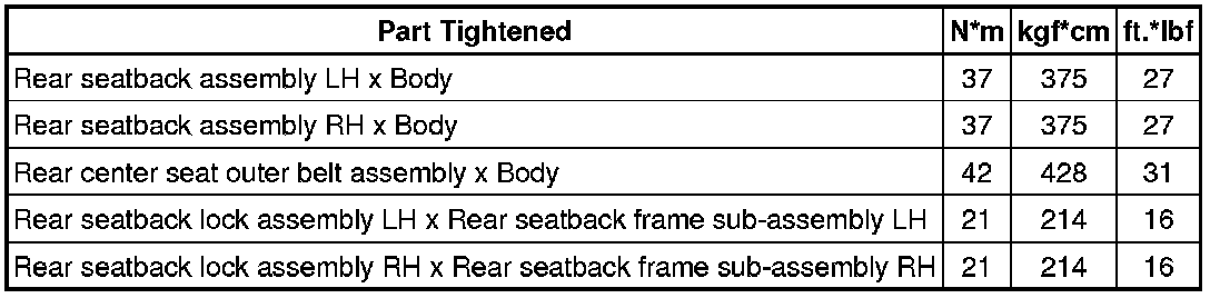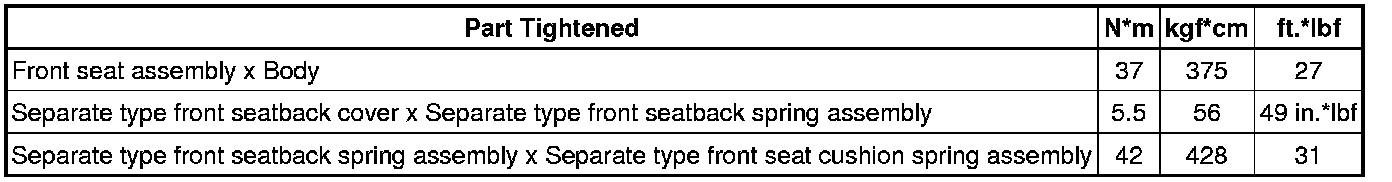 SPECIFICATIONS: SEAT: TORQUE SPECIFICATIONS