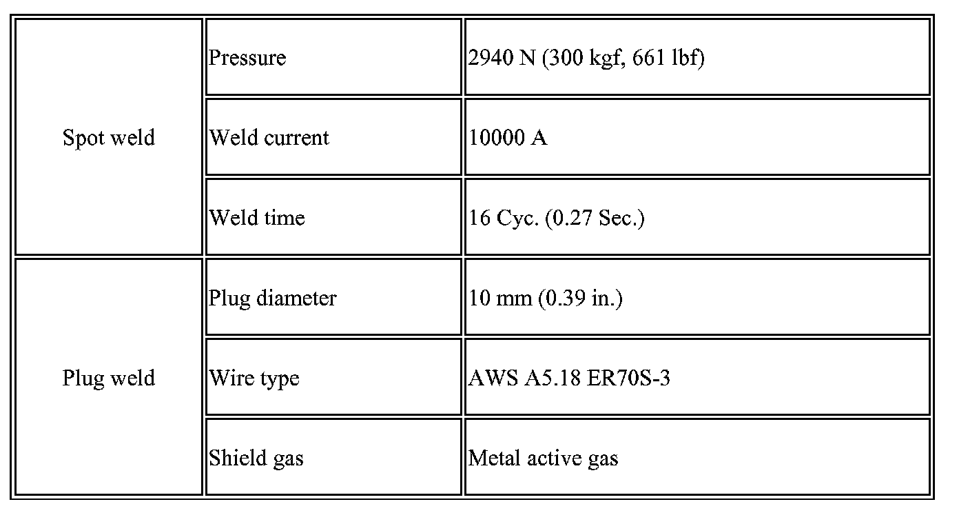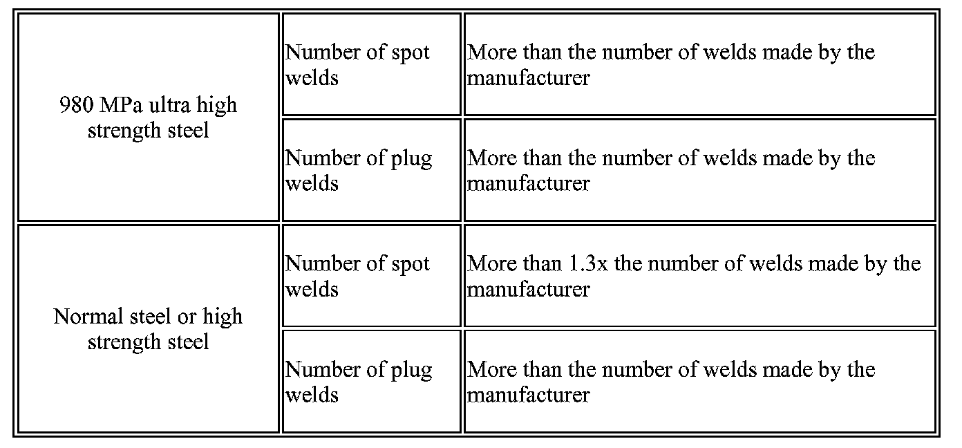 a. Follow the welding conditions below when welding ultra high strength steel to assure sufficient weld strength.