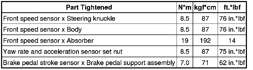 SPECIFICATIONS: BRAKE CONTROL / DYNAMIC CONTROL SYSTEMS: TORQUE SPECIFICATIONS