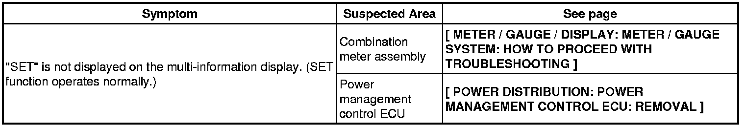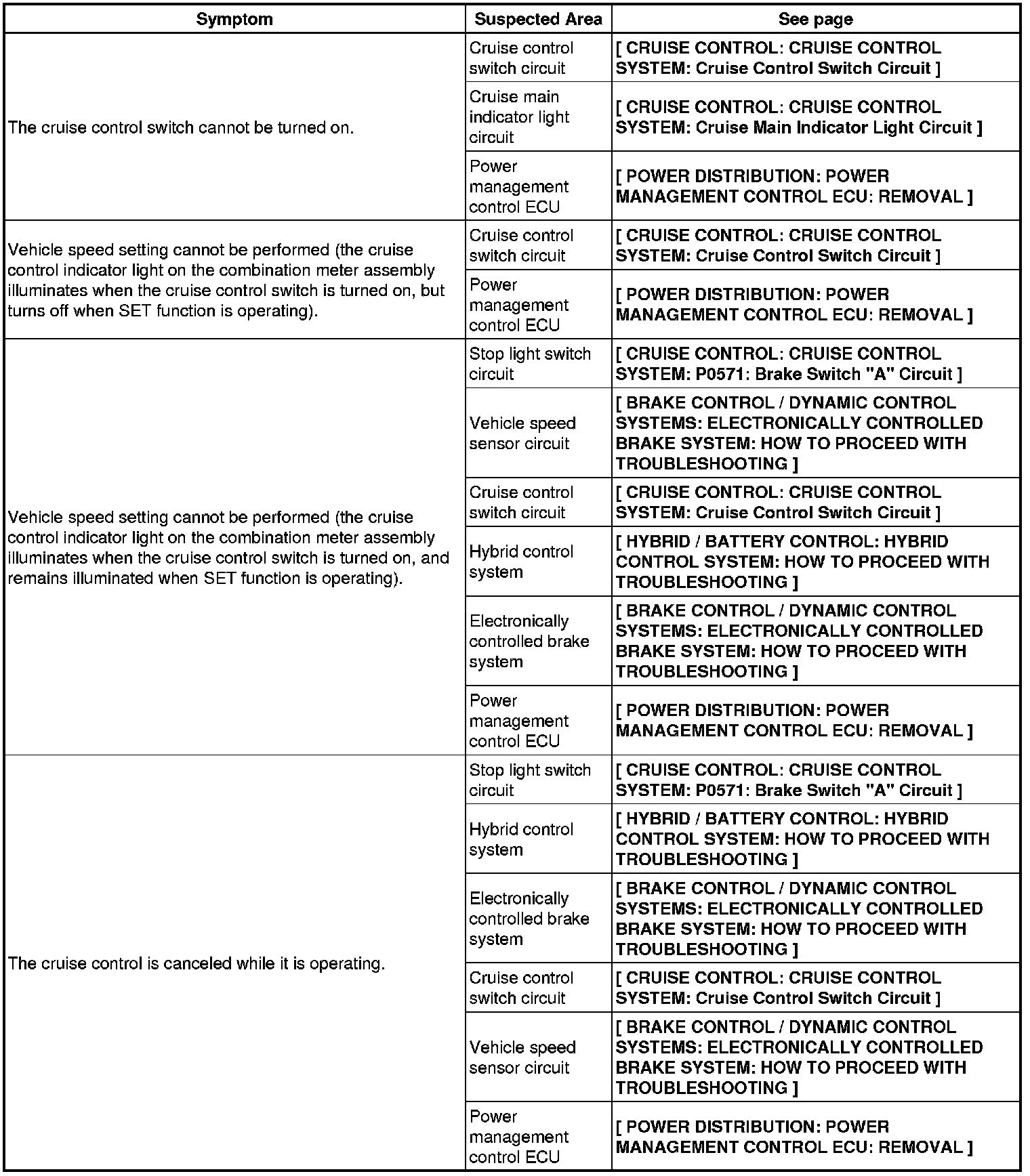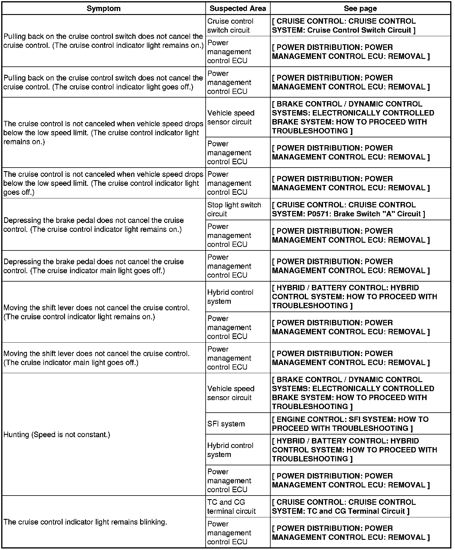 CRUISE CONTROL: CRUISE CONTROL SYSTEM: PROBLEM SYMPTOMS TABLE