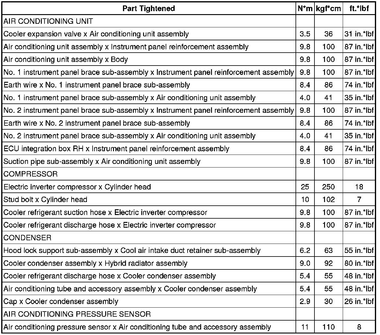 SPECIFICATIONS: HEATING / AIR CONDITIONING: TORQUE SPECIFICATIONS