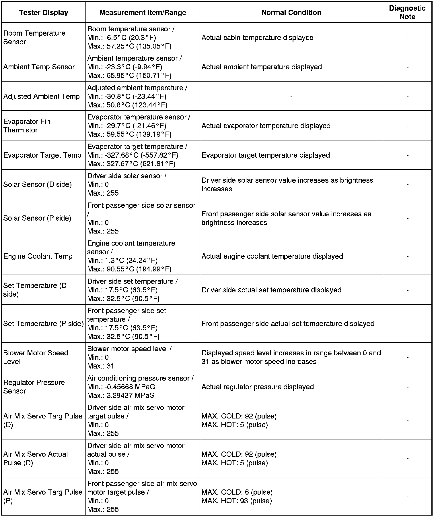 HEATING / AIR CONDITIONING: AIR CONDITIONING SYSTEM: DATA LIST / ACTIVE TEST