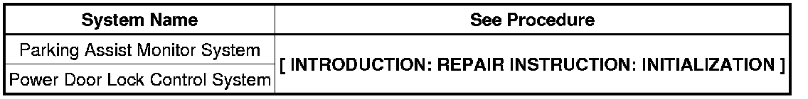* When the cable is disconnected from the negative (-) auxiliary battery terminal, initialize the following system(s) after the cable is reconnected.