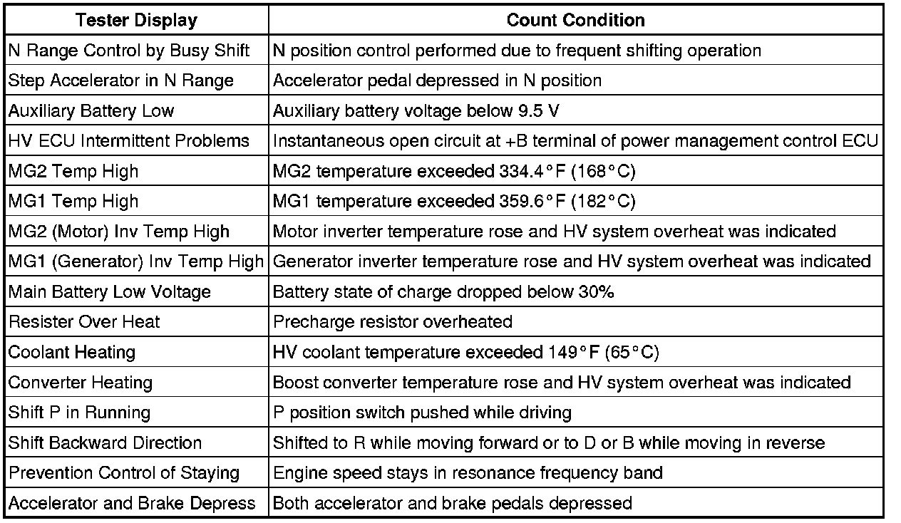 The power management control ECU (HV CPU) records inappropriate operations performed by the driver and the number of abnormal conditions that have been input to the ECU as operation history data.