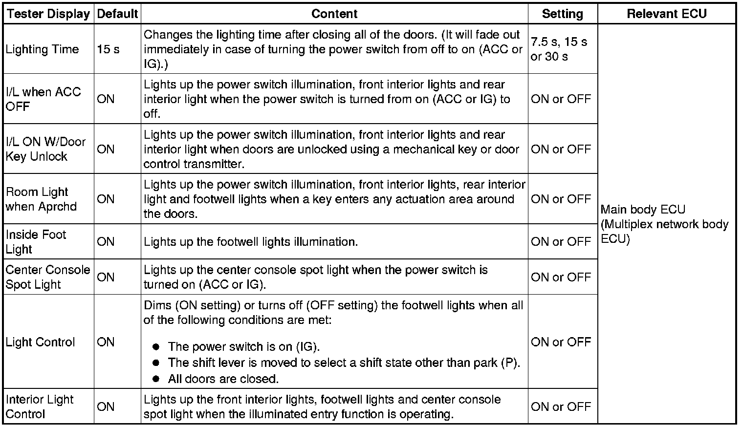 LIGHTING (INT): LIGHTING SYSTEM: CUSTOMIZE PARAMETERS